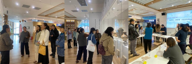 理论学习后,全体教师共同参观了器山书局珍藏的古陶器与文献书籍。在讲解员的引导下,教师们驻足于汉代彩绘陶罐、宋代青瓷茶具等展品前,从器物纹饰中感受中华美学的历史脉络,体悟“匠人精神”的时代价值。随后开展的“陶韵匠心,文载师德”文化艺术体验活动中,教师们通过体验古陶制作,将文化传承与师德涵养有机融合。