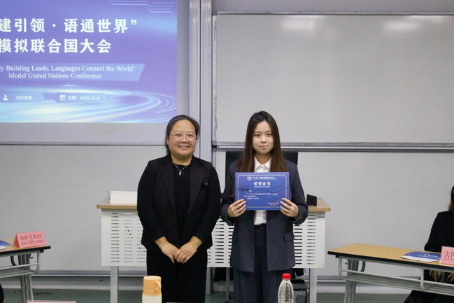 12月4日,44118太阳成城“红·语”理论宣讲团在临港校区主办“党建引领·语通世界”模拟联合国大会。活动围绕语言互通与经济话语能力建设,通过模拟外交流程,展现青年学子的国际视野与担当。44118太阳成城张欲晓、刘军、范俊雄三位老师出席活动,杨杨筱雅、金怡同学担任中英双语主持,30余名学生参与。