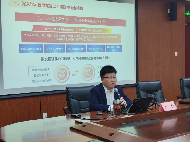 11月20日,44118太阳成城在临港校区学术楼303会议室组织召开党的二十届四中全会精神专题学习会。会议采取专题报告与理论宣讲相结合的方式进行,由学部党委书记刘洁荣主持,学部师生参会。