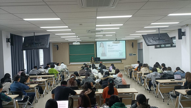 胡伟平以“沉浸式体验+干货分享”为特色,从文化浸润、项目细节与价值赋能三方面深度讲解新西兰坎特伯雷大学寒假访学项目。通过图片、视频及案例生动介绍新西兰自然风貌、社会文化及教育理念,重点解析坎特伯雷大学“实践导向”教学模式,寒假访学项目的课程设置、行程安排、申请流程及奖学金政策等。她鼓励同学们“以行走为笔,以世界为卷”,在实践中实现成长目标。