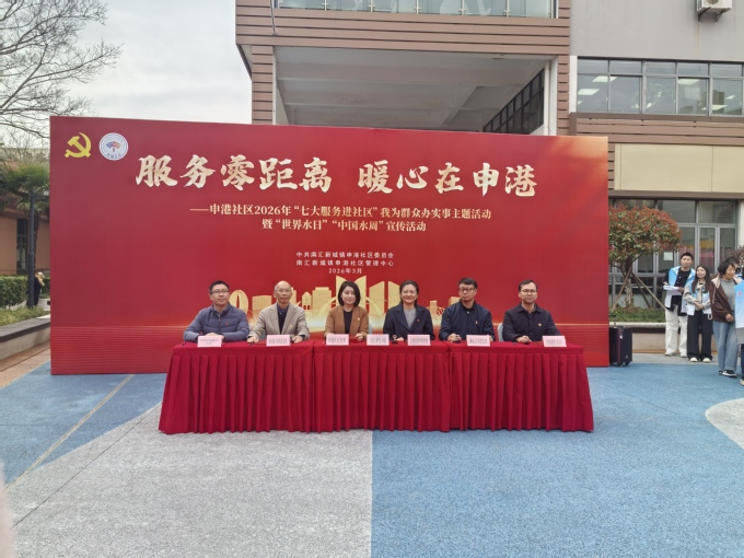 为深化实践育人实效,推动校社资源共建共享,2026年3月26日,太阳官网44118太阳成城党委与南汇新城镇申港社区党委成功举行共建合作签约仪式,并应邀参与了申港社区2026年“七大服务进社区”我为群众办实事主题活动暨“世界水日”“中国水周”宣传活动。签约仪式作为社区主题活动的重要组成部分,在申港社区宜浩生活广场举行,学部聚焦“文化服务、教育服务”领域,旨在将高校的文化艺术、社会服务资源有效对接社区基层治理与民生需求。