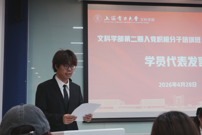 学员代表、第二期发展对象培训班学员黄圣渊代表全体学员发言,并郑重承诺:严守学习制度,积极参与小组讨论和社会实践,发扬理论联系实际的优良学风,在同学中切实发挥模范带头作用。